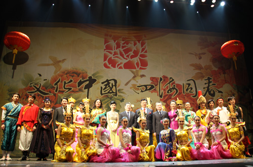 熱烈喜慶的《新春花鼓》拉開了 “文化中國·四海同春”歐洲巡演的序幕。美麗婀娜的維族舞蹈《頂碗舞》、熱情奔放的藏族舞蹈《快樂藏人》、氣勢(shì)雄渾的馬頭琴獨(dú)奏《萬馬奔騰》贏得陣陣掌聲;歌唱家呂薇的一曲充滿鄉(xiāng)音的《采茶舞曲》,讓浙江籍僑胞倍感親切;著名男高音歌唱家劉斌鏗鏘有力的《咱當(dāng)兵的人》,將整臺(tái)演出推向高潮;美輪美奐的舞蹈《千手觀音》落下了藝術(shù)團(tuán)在法演出的帷幕。持續(xù)近三個(gè)小時(shí)精彩絕倫的演出不時(shí)地博得了觀眾雷鳴般的掌聲。僑胞們?cè)凇峨y忘今宵》的音樂聲中久久佇立,不愿離去,贊嘆“這是一場(chǎng)內(nèi)容豐富、充滿激情、民族特色濃郁、藝術(shù)水準(zhǔn)高超的演出,令人難忘”。他們由衷地感謝國務(wù)院僑辦在新春之際為旅法僑胞帶來的文化盛宴。