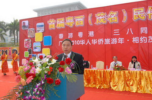 林琳在啟動儀式上作了講話。他首先代表廣東省僑辦向茂名全市人民表示熱烈的祝賀,并預(yù)祝首屆粵西(茂名)民俗風(fēng)情旅游節(jié)取得圓滿成功!他指出,茂名市在首屆粵西民俗風(fēng)情旅游節(jié)中同時舉辦“廣東2010年華人華僑旅游年·相約茂名”活動,既體現(xiàn)了這次旅游節(jié)的僑鄉(xiāng)特色,更體現(xiàn)了茂名市各級黨委政府對僑務(wù)工作的重視,對為僑服務(wù)和以僑為橋搞活經(jīng)濟、搞活旅游所作出的巨大努力,認為此舉必將為溝通海內(nèi)外茂名鄉(xiāng)親的聯(lián)系、發(fā)掘茂名旅游資源、進一步拓展和繁榮茂名的旅游市場發(fā)揮出積極的作用。