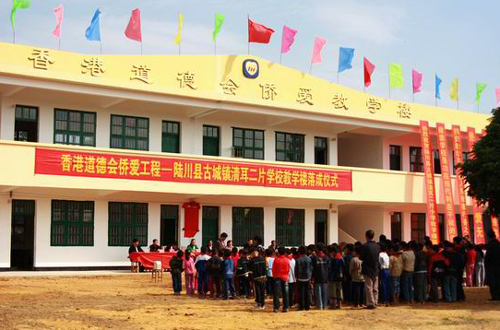 通過廣西自治區(qū)僑辦牽線搭橋,捐助支持廣西各項(xiàng)公益事業(yè)的僑社和慈善團(tuán)體中,香港道德會(huì)較為突出。香港道德會(huì)是香港有名的慈善機(jī)構(gòu),2009年先后在廣西欽州市欽南區(qū)新營村、賀州市八步區(qū)東南村、岑溪市地麻村、陸川縣清耳村等地,捐建4所小學(xué),捐贈(zèng)總額達(dá)172萬元人民幣。這些受捐建的小學(xué)有個(gè)響亮的名字:“香港道德會(huì)僑愛教學(xué)樓”。