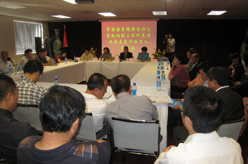 與奧克蘭華僑華人各界人士的座談會在中國駐奧克蘭總領(lǐng)館舉行,由總領(lǐng)事廖菊華主持,當?shù)貎S團、僑校、僑報負責人及專家學(xué)者等約50人與會,大家就共同關(guān)心的奧克蘭華僑華人群體的變化與問題研究、華僑華人身份與國籍問題、僑胞權(quán)益保護、華文教育與弘揚中華文化、和諧僑社建設(shè)及促進中外各領(lǐng)域交流和中國和平統(tǒng)一大業(yè)等,廣開思路、暢所欲言,深入交換看法和意見,積極為海外僑務(wù)工作的科學(xué)發(fā)展建言獻策。