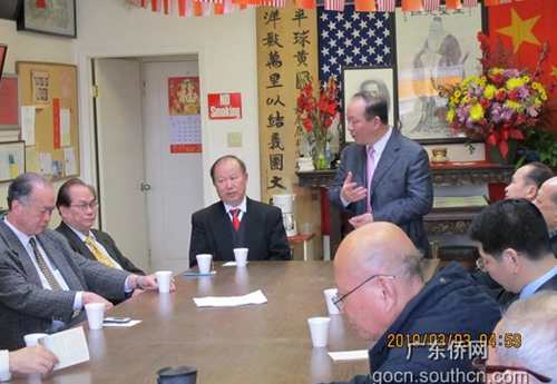 首先,吳銳成向社團領(lǐng)導(dǎo)介紹了廣東省經(jīng)濟發(fā)展情況。他指出中國率先走出國際金融風暴的影響,2009年國民生產(chǎn)總值增長8.5%,經(jīng)濟總量超越德國成為世界第三大經(jīng)濟體。廣東作為全國第一經(jīng)濟大省,國民生產(chǎn)總值增長9.5%。今日廣東,經(jīng)濟繁榮,社會穩(wěn)定,人民安居樂業(yè)。他誠懇地表示,廣東的發(fā)展離不開海外華僑華人的支持,改革開放以來旅。居舊金山的鄉(xiāng)親回家鄉(xiāng)投資,推動廣東產(chǎn)品出口,積極參與家鄉(xiāng)經(jīng)濟建設(shè),為家鄉(xiāng)的經(jīng)濟發(fā)展和社會進步做出了貢獻。他希望大家多回家鄉(xiāng)看看,多了解家鄉(xiāng)的新變化,了解廣東經(jīng)濟發(fā)展的新機遇,尋找商機,發(fā)展事業(yè)。最后,吳銳成代表廣東省僑辦向僑胞們送上節(jié)日祝福,祝大家身體健康,家庭幸福。
