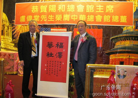 在就職儀式上,吳銳成代表廣東省僑辦對(duì)盧偉棠先生接任中華總會(huì)館總董表示熱烈的祝賀。吳銳成贊揚(yáng)盧偉棠先生從事僑社服務(wù)工作三十多年來,為社團(tuán)的發(fā)展和團(tuán)結(jié),為爭(zhēng)取華社的權(quán)益和福祉等方面作出的貢獻(xiàn),并向盧偉棠先生贈(zèng)送了大幅題詞“福澤華社”。