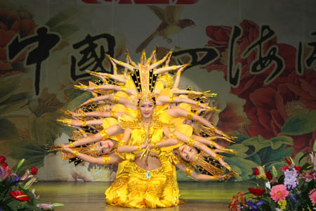著名歌唱家劉斌、呂微為觀眾們演唱了《咱當(dāng)兵的人》、《茶花女》等家喻戶曉的經(jīng)典歌曲。維吾爾族舞蹈《頂碗舞》、哈薩克族舞蹈《可愛的一朵玫瑰花》展現(xiàn)了中國西域少數(shù)民族的優(yōu)美舞姿,“千手觀音”舞蹈為觀眾們送來了虔誠的祝福,整場(chǎng)演出氣勢(shì)磅礴,觀眾如癡如醉,臺(tái)上臺(tái)下互動(dòng)不斷,高潮迭起。