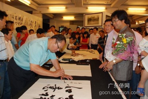 胡志明市華人書法協(xié)會(huì)會(huì)長(zhǎng)陳川先生在第5郡文化中心專門安排書法俱樂部成員與廣東禪武書法交流團(tuán)現(xiàn)場(chǎng)揮毫,互贈(zèng)作品,越中書畫家們?cè)谝还P一畫中展現(xiàn)越中友誼萬(wàn)古長(zhǎng)青。(小琴)