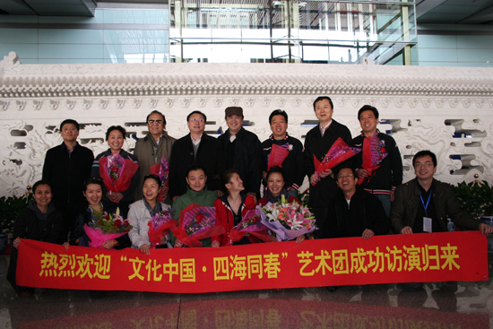 中新社北京3月9日電 (南若然)結(jié)束在南美四國23天的慰僑巡演之后,9日下午,“文化中國·四海同春”赴南美洲藝術(shù)團(tuán)載譽(yù)返回北京。該團(tuán)團(tuán)長、國務(wù)院僑辦副主任馬儒沛在首都機(jī)場接受中新社記者采訪時表示,赴南美巡演“鵬程數(shù)萬里,廣交四方友,笑迎八面風(fēng),演繹中華情”,并創(chuàng)造了四個之最。