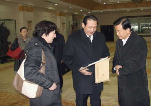 抵達(dá)濟(jì)南時(shí),山東省僑辦副主任史進(jìn)、濟(jì)南天橋區(qū)區(qū)長(zhǎng)王建軍、濟(jì)南市僑辦副主任蘇峰到機(jī)場(chǎng)迎接。在機(jī)場(chǎng)貴賓廳史進(jìn)與許榮茂進(jìn)行了親切交談,并向其發(fā)出邀請(qǐng),希望他撥冗出席2010年9月國(guó)務(wù)院僑辦和山東省政府在濟(jì)南聯(lián)合舉辦的“第五屆華商企業(yè)科技創(chuàng)新合作交流會(huì)”,并作為主講嘉賓在大會(huì)論壇發(fā)表演講。史進(jìn)將邀請(qǐng)函鄭重交給許榮茂,許榮茂欣然接受了參會(huì)邀請(qǐng)。