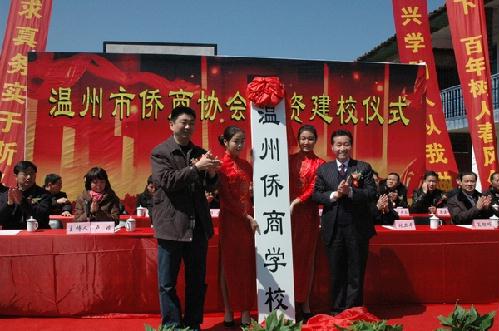 溫州市僑辦、僑商協(xié)會獲悉上述情況后,積極與泰順縣有關部門與領導取得聯(lián)系,并決定為該校捐資120萬元用于校安工程建設,經協(xié)商,新建的學校命名為“溫州僑商學校”。