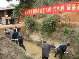 這次冬修水利勞動,是廣西壯族自治區(qū)僑聯(lián)積極響應廣西壯族自治區(qū)黨委、自治區(qū)人民政府號召的一次主題實踐活動。當日,一到勞動現(xiàn)場,廣西僑聯(lián)主席韋干身先士卒,帶頭跳入2米深的水渠里,帶領大家迅速投入到勞動中去。工地上,廣西僑聯(lián)會旗和“自治區(qū)僑聯(lián)攜手全區(qū)人民興水利,強基礎,惠民生”橫幅迎風飄揚,大家情緒高漲,干勁十足,有的鏟淤泥、搬石塊,有的鋤雜草、修整渠面……,有人身上濺滿了泥漿也全然不顧。