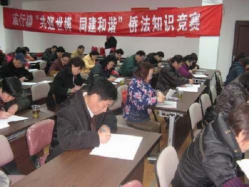 中新網3月26日電 據上海市僑辦消息,近日,上海市寶山區(qū)廟行鎮(zhèn)舉辦了以“共迎世博、同建和諧”為主題的僑法知識競賽。