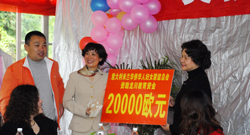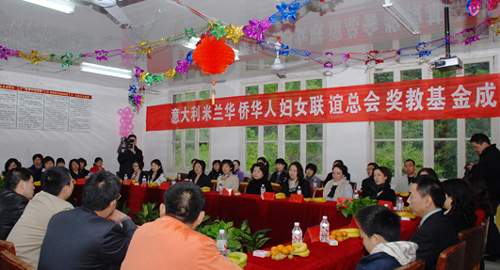 中新網(wǎng)4月7日電 據(jù)文成縣外僑辦消息,4月2日,在浙江省文成縣龍川中心學校隆重舉行意大利米蘭華僑華人婦女聯(lián)誼總會獎教基金成立儀式。由榮譽會長廖小平、會長趙小敏率領的米蘭華僑華人婦女聯(lián)誼總會代表團一行16位愛心女士,出席了獎教基金成立儀式,為龍川中心學校送上首期獎教基金20000歐元。
