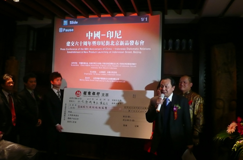 中新網(wǎng)4月28日電 據(jù)北京市僑聯(lián)消息,在中印建交六十周年之際,北京市部分歸僑、僑眷和來(lái)華的印尼人士于4月24日在北京炎黃藝術(shù)館子園會(huì)所俱樂(lè)部舉行了紀(jì)念活動(dòng),同時(shí)還舉辦了由印尼陽(yáng)成集團(tuán)有限公司建立印尼街北京品在京發(fā)布,這是繼上海印尼街后又一個(gè)舉措。