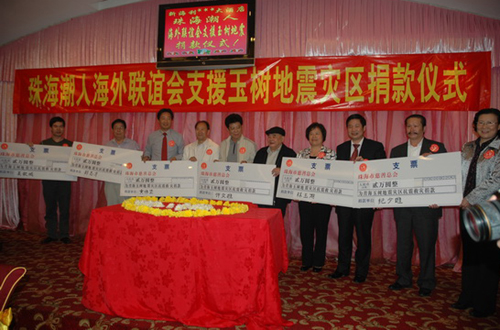 中新網(wǎng)4月30日電 據(jù)珠海僑務(wù)局消息,地震災(zāi)情牽動著億萬中國人民的心,也受到珠海海外聯(lián)誼會的潮商們的高度關(guān)注。為積極支持玉樹的災(zāi)后重建工作,繼08年汶川大地震該會捐資40萬元支持綿虒鎮(zhèn)涂禹山村重建格子巖組“僑心村”后,珠海潮人海外聯(lián)誼會又于4月27日舉辦現(xiàn)場捐款活動,呼吁珠海的廣大潮商伸出援手,募捐善款,幫助地震災(zāi)區(qū)同胞,抗震救災(zāi)、重建家園,為抗震救災(zāi)行動貢獻(xiàn)一份力量。廣東省珠海市政協(xié)副主席、市委統(tǒng)戰(zhàn)部部長羅碧堅、市僑聯(lián)主席李清出席了捐贈儀式。