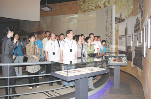 當(dāng)天下午,胡運熹一行一踏上老家駱駝這塊土地就感到非常興奮,在鎮(zhèn)海新城管委會,聽取了新城規(guī)劃介紹,觀看了沙盤,更是深有感觸。隨后,胡運熹一行來到寧波幫博物館,走過“時光甬道”,先后參觀了寧波幫博物館序廳、篳路藍縷、建功立業(yè)、赤字情懷、群星璀璨和薪火永傳等展區(qū)!靶“撞耍郯,丈夫出門到上海……”當(dāng)解說員用寧波話朗讀出一句句寧波民謠時,構(gòu)起了他們童年時的記憶,海外僑領(lǐng)們熱烈鼓掌,并對寧波商幫文化的精髓與傳承表示稱贊。胡運熹一行來到鎮(zhèn)海應(yīng)行久外語實驗學(xué)校, 在參觀了體藝館、多媒體教室、語音實驗室等處后,胡運熹連連感慨校園的巨大變化。同時他對該!盀榱艘磺袑W(xué)生的健康成長,促進每個學(xué)生的最優(yōu)發(fā)展”的教學(xué)理念表示由衷的贊賞。他說,鎮(zhèn)海在培養(yǎng)人才方面,有這樣好的學(xué)校、這樣的優(yōu)秀的老師,我們的下一代將會有更好的遠景,我們的祖國也會給世界一個全新的面貌。