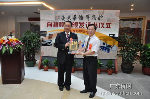 廣東省僑辦副主任鄭建民及向廣東華僑博物館捐贈資金、文物和資料有關人士60多人參加了頒發(fā)證書儀式。儀式上,廣東華僑博物館向有關熱心人士頒發(fā)“廣東華僑博物館收藏證書”,向香港梅州聯(lián)會頒發(fā)捐贈證書和紀念品。