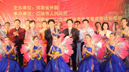 此次演出是在河南省對口援建江油的任務(wù)基本完成和由中國僑聯(lián)援建的北川中學(xué)即將竣工之際,河南省僑聯(lián)為了表達對援建、捐建四川地震災(zāi)區(qū)建設(shè)者的崇高敬意,組織近50名演員專場慰問演出。四川省僑聯(lián)從組織接待、提供用車、制定方案、聯(lián)絡(luò)協(xié)調(diào)、勘測場地、組織參觀、安全保障等給予了全方位的配合和支持。綿陽市僑聯(lián)、江油外僑辦積極參與,組織有序,使2000多名援建工作者和當(dāng)?shù)厝罕、學(xué)生觀看了演出,達到了慰問目的。(趙建中)
